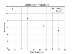 [[Datei:Diagramm für den Vergleich der Schwebungsfrequenz mit den anderen zwei Frequenzen.png|mini|Vergleich des Berechneten Omega- und des gemessenen]] | [[Datei:Diagramm für den Vergleich der Schwebungsfrequenz mit den anderen zwei Frequenzen.png|mini|Vergleich des Berechneten Omega- und des gemessenen]] | ||