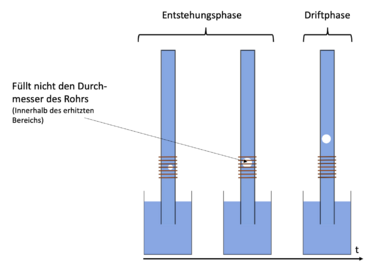 Wird das Glasrohr an der mit einer Wärmequelle versehenen Stelle hinreichend erhitzt, so bilden sich Dampfblasen, welche, solange sie sich im erhitzten Bereich befinden, wachsen, weil weiterhin Wasser in die Blase verdampft wird (Entstehungsphase). Steig die Blase weiter auf und verlässt die erhitzte Stelle, so driftet sie weiter und kollabiert anschließend (Driftphase).