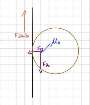 Unser Ziel war es ein Minimum $$F_{Stab}$$ mit der Hilfe von $$ \sum_{F_R} $$ zu bestimmen. $$ F_{Stab} $$ muss größer sein als die gesamt Summe aller Sandkörner $$ \Sigma_{F_R} $$ , damit wir den Stab aus dem Sand ziehen können, müssen wir genügend Kraft aufwenden um die Reibungskraft $$ F_R $$ zu überwinden. $$F_R$$ können wir berechnen indem wir $$\mu_h$$, also den Haftreibungskoeffizenten mit $$F_D$$, der Kraft des Drucks multiplizieren. Das muss für jedes einzelne Sandkorn wiederholt werden. Weil jedes Sandkorn sein eigenes $$F_D$$, $$F_R$$ und $$\mu_h$$ hat. $$\mu_h$$ ist direkt abhängig von $$F_D$$. Um die unendlich vielen Sandkörner zu berechnen, könnte man Integrale verwenden.