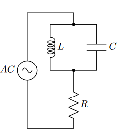 Ein RLC-Schwingkreis ist eine elektrische Schaltung, welche aus einer Spule (L), einem Widerstand (R) und einem Kondensator (C) besteht, die elektromagnetische Schwingungen ausführen kann. In unserem Fall wird der RLC-Schwingkreis von einer Wechselstromquelle (AC) betrieben.