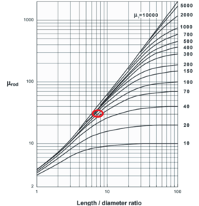 Wir können erkennen, dass der Wert von Ferrit relativ klein ist. Dazu haben wir einen Graphen gefunden, welcher diesen Fehler erklärt (Abbildung 9). Dieser zeigt, dass das \mu_r von Ferrit vom Verhältnis der Länge und des Diameters der Spule, abhängt.