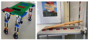 Den Läufer haben wir aus Lego gebaut. Dieser besteht aus einer rechteckigen Grundfläche und vier Beinen. Die Beine sind auf der Unterseite der Grundfläche angebracht. (siehe Bild 1, links)