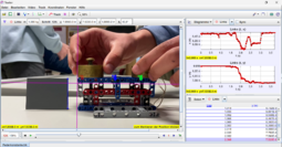 Zu Beginn unseres Projekts haben wir bei jedem Durchlauf des Läufers mit der jeweiligen Parameterkonfiguration ein Video gemacht und diese anschließend im Programm Tracker ausgewertet. Das ist eine vergleichbare Vorgehensweise wie bei der Bestimmung der Federkonstante. Hierbei werden einzelne Punkte auf dem Läufer betrachtet. Im Video werden die Positionierungen der Punkte in jedem Frame über Zeit bestimmt.
