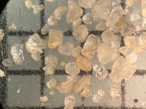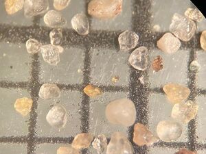 Danach wurden die Sandkörner in Größen-Intervalle eingeteilt und der Anteil der Sandkörner dieser Größe bestimmt.