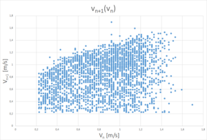 Ein Unterschied zwischen den beiden Graphen besteht darin, dass es bei den Messdaten keine Werte unter $$0,2 \frac{m}{s}$$ gibt. Das lässt sich dadurch erklären, dass durch Vianas Auflösung und FPS besonders kleine Sprünge nicht ausgewertet werden können.