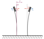 Befestigen Sie die unteren Enden zweier identischer Blattfedern an einer nicht magnetischen Basis und befestigen Sie Magnete an den oberen Enden, sodass sie sich abstoßen und sich frei bewegen können. Untersuchen Sie, wie die Bewegung der Federn von relevanten Parametern abhängt.