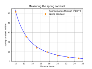 Durch diese Messung ist uns nun bewusst, dass wir den Einfluss der Magnetkraft auf das System mithilfe der Distanz variieren können.