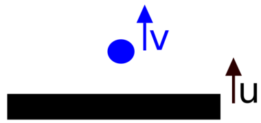 Landung: Da wir angenommen haben, dass es weder Luftreibung noch Reibung an der Wand/Röhre gibt, sowie dass die Auslenkung der Membran $$0$$ ist, landet der Ball mit einer Geschwindigkeit von $$-v_{max}$$ wieder auf der Membran. Dort verliert er Energie durch Deformation, bekommt aber auch einen Teil seiner Energie wieder für den nächsten Sprung nach oben. Außerdem beschleunigt die Membran den Ball erneut. Aus diesen beiden Faktoren setzt sich die Geschwindigkeit für den nächsten Sprung zusammen.
