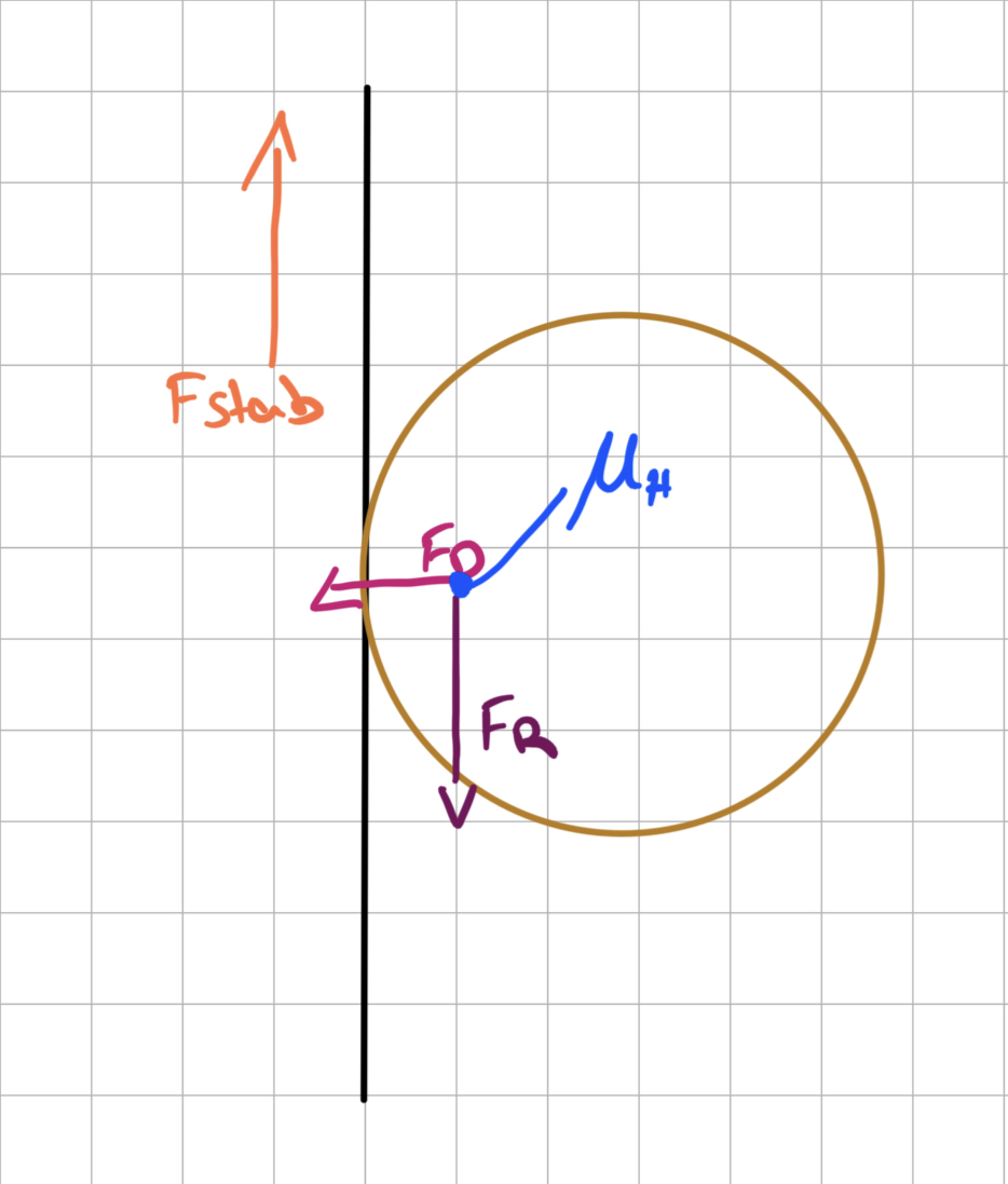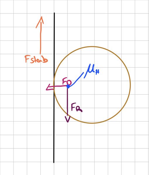 Einzelnes Sandkorn am Stab mit wirkenden Kräften